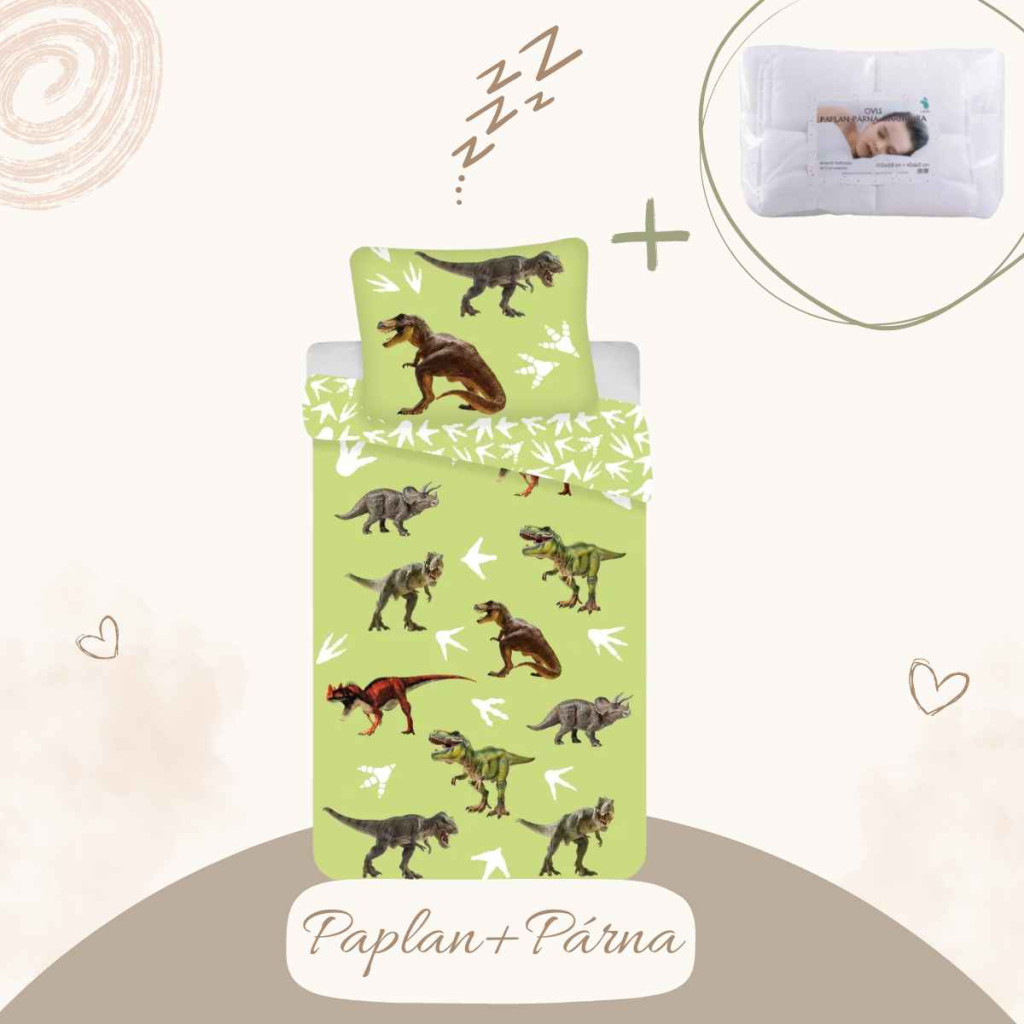 Dinoszaurusz ágyneműhuzat szett, 100x135 cm, 40x60 cm