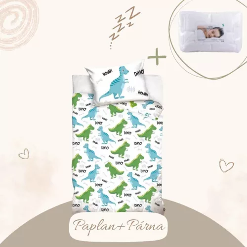 5904302554740-SZETT Dinoszaurusz roar ágyneműhuzat szett, 100x135 cm, 40x60 cm